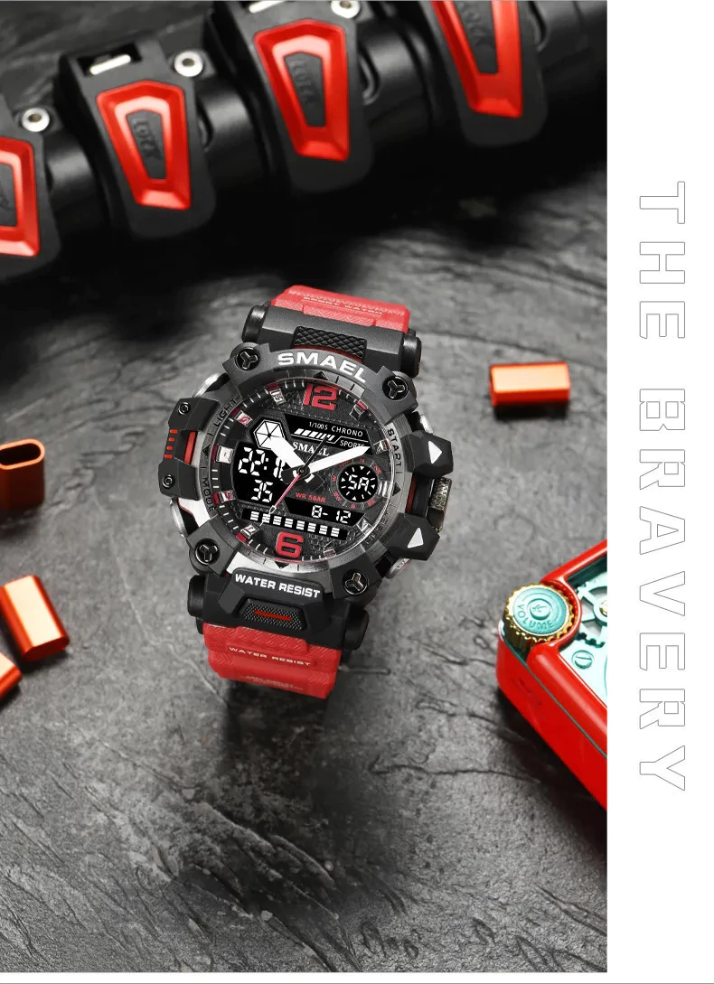 SMAEL Homens Relógios 50m Impermeável Relógio Esportivo Militar Homem Relógio Esportivo Digital 8072 Dual Display Watch Quartz Led Digital